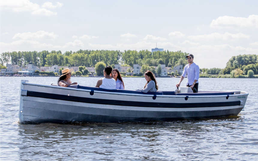 Kleinere groepen adviseren we een sloep te huren via sloepverhuuralmere.nl. Deze boten zijn zonder kapitein en zelf te bevaren zonder vaarbewijs. Klik door naar de website voor meer informatie en om een sloep te reserveren.